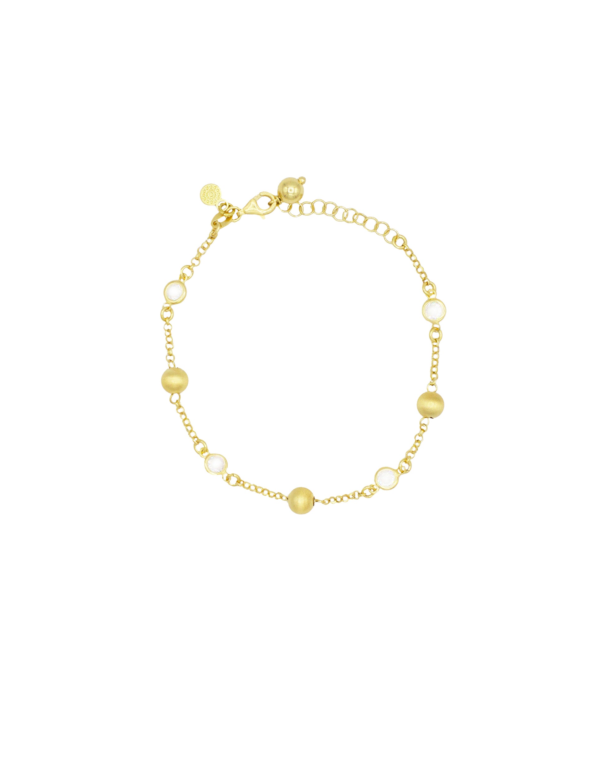 Bracciale in argento 925 dorato con boulle sabbiate e zirconi bianchi.