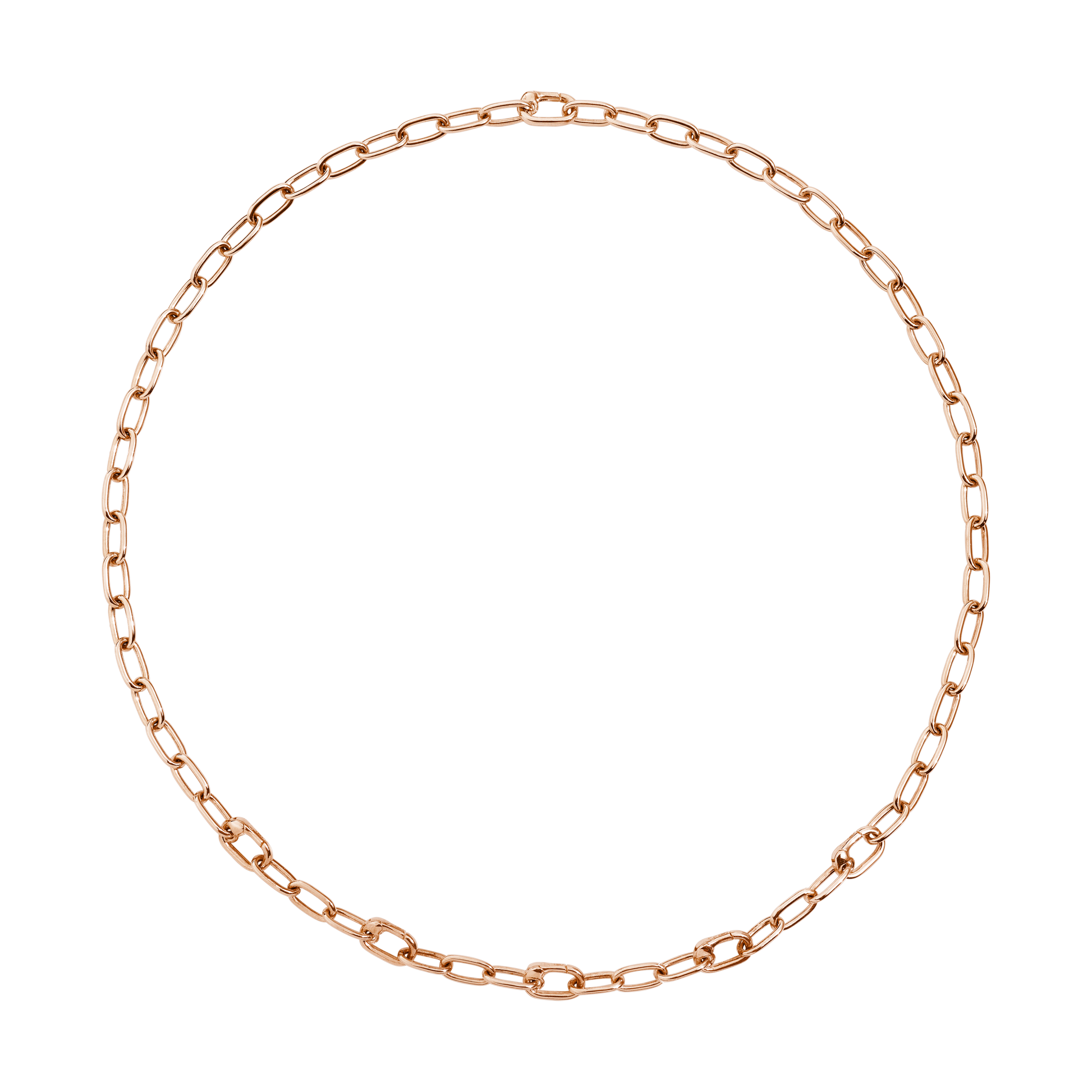 Collana essentials in argento dorato, oro rosa 18 kt con 5 maglie apribili più una maglia apribile come chiusura.