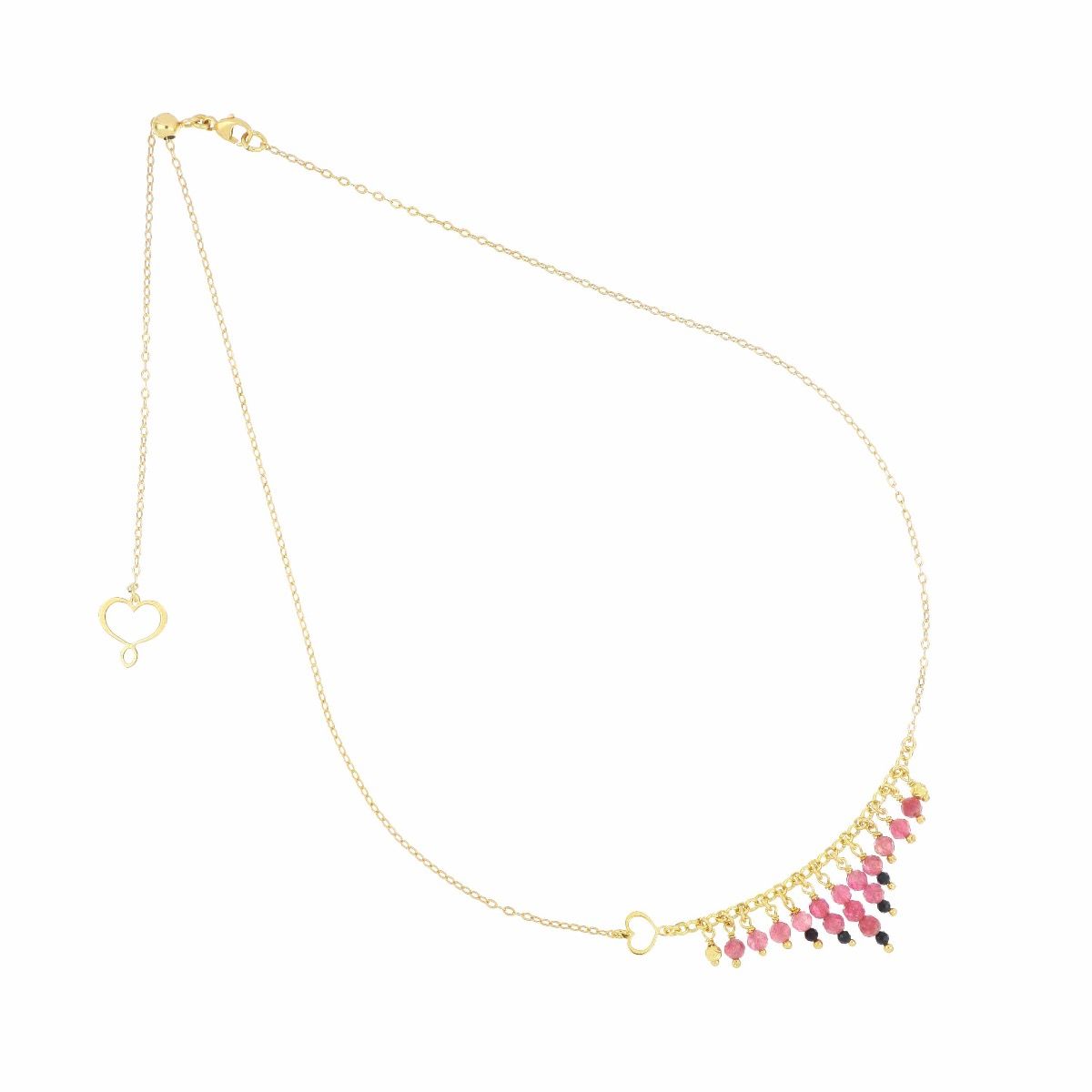 Girocollo in argento 925 con galvanica oro giallo, cascata di Tormalina e Spinelli.