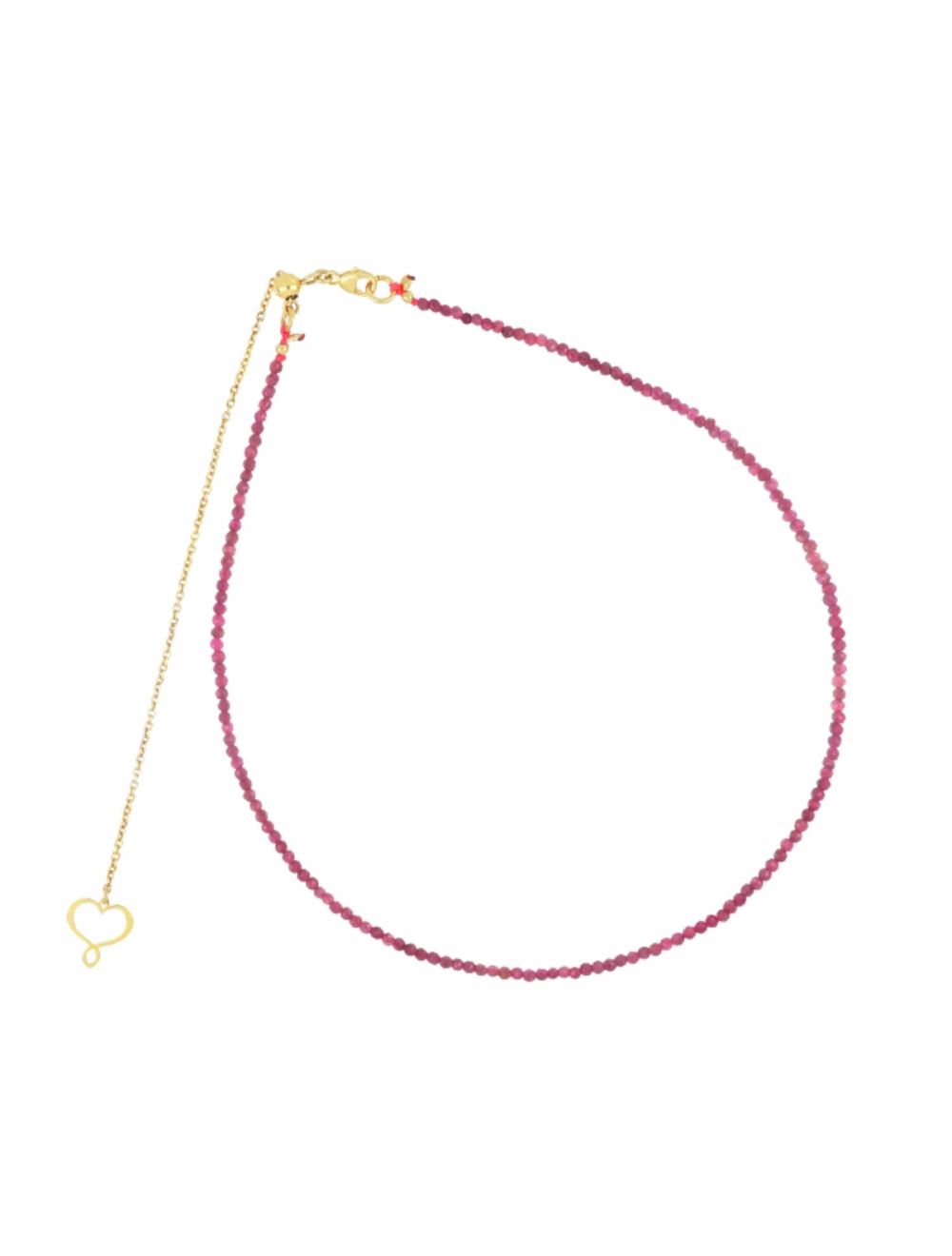 Girocollo in argento 925 placcato in oro giallo e un filo di pietre di Rubino sfaccettato 2 mm.