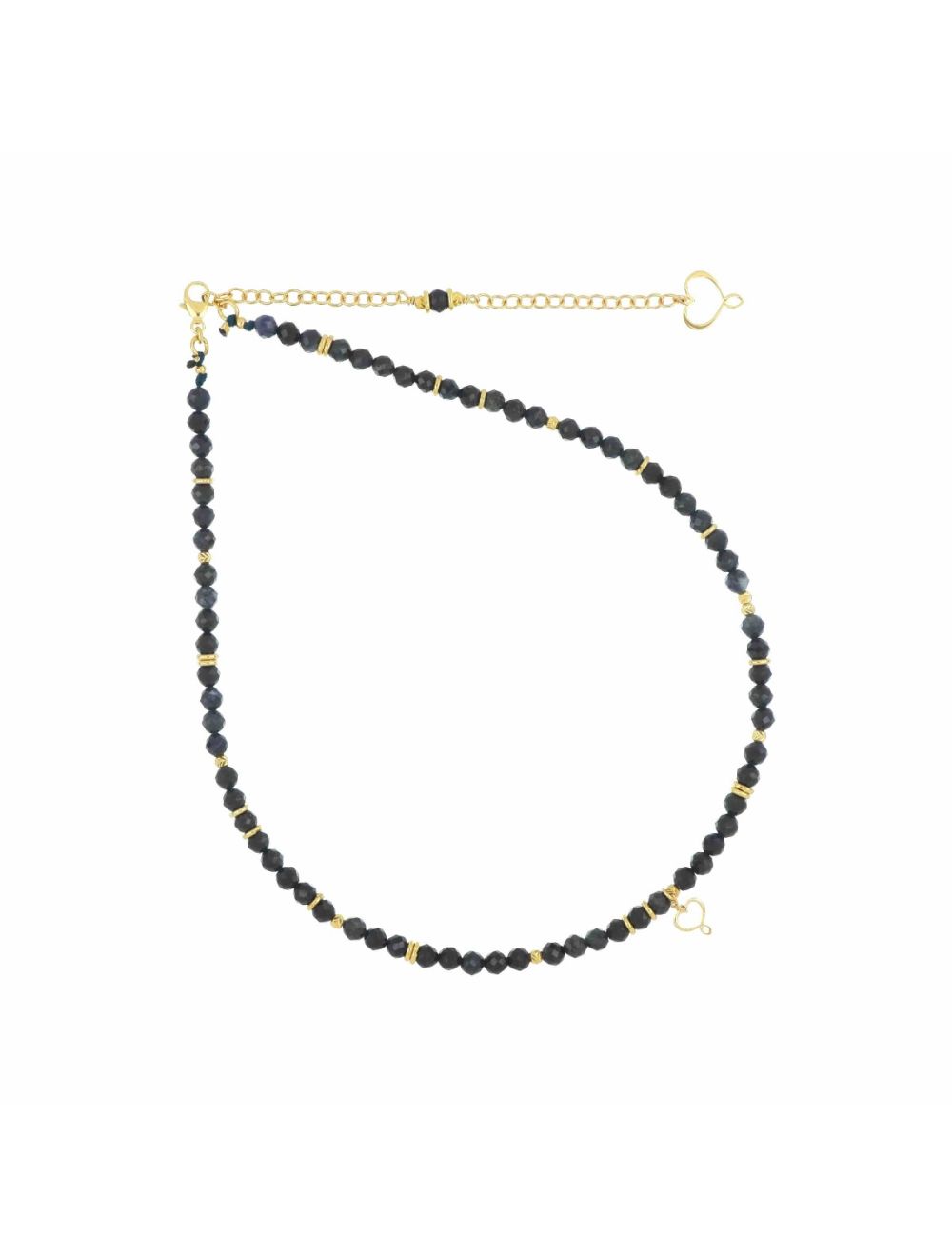 Girocollo in argento 925 con galvanica oro giallo, pietre di Zaffiro blu scuro sfaccettato e cuore traforato pendente.
