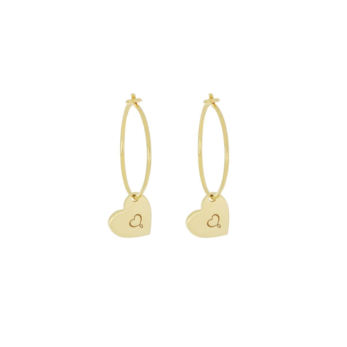 Orecchini a cerchio in argento 925 con galvanica oro giallo e cuore maman pendente.