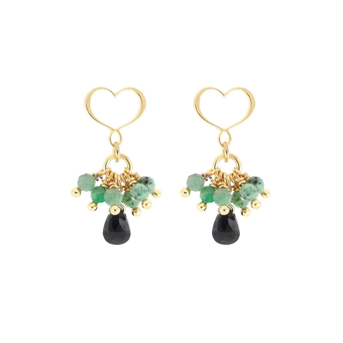 ORECCHINI FRANGE CUORE SMERALDI E SPINELLO