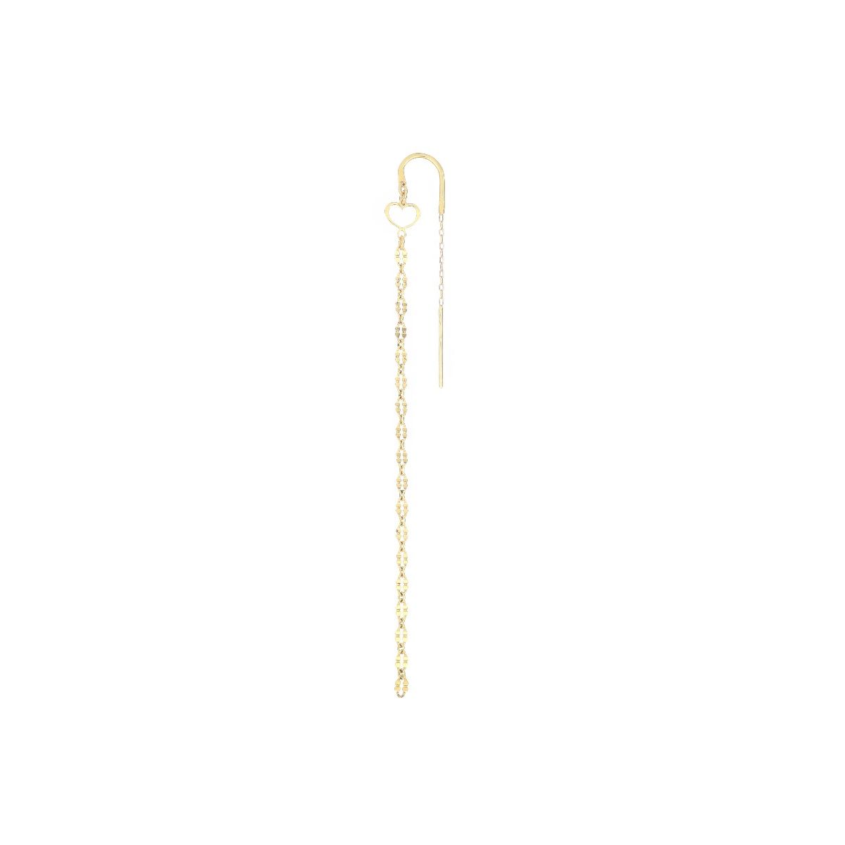 Orecchino ad ago in argento 925 con galvanica oro giallo e catena composta da intreccio di quadrifogli.