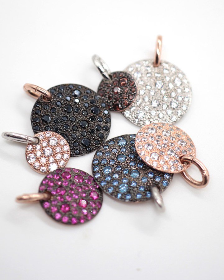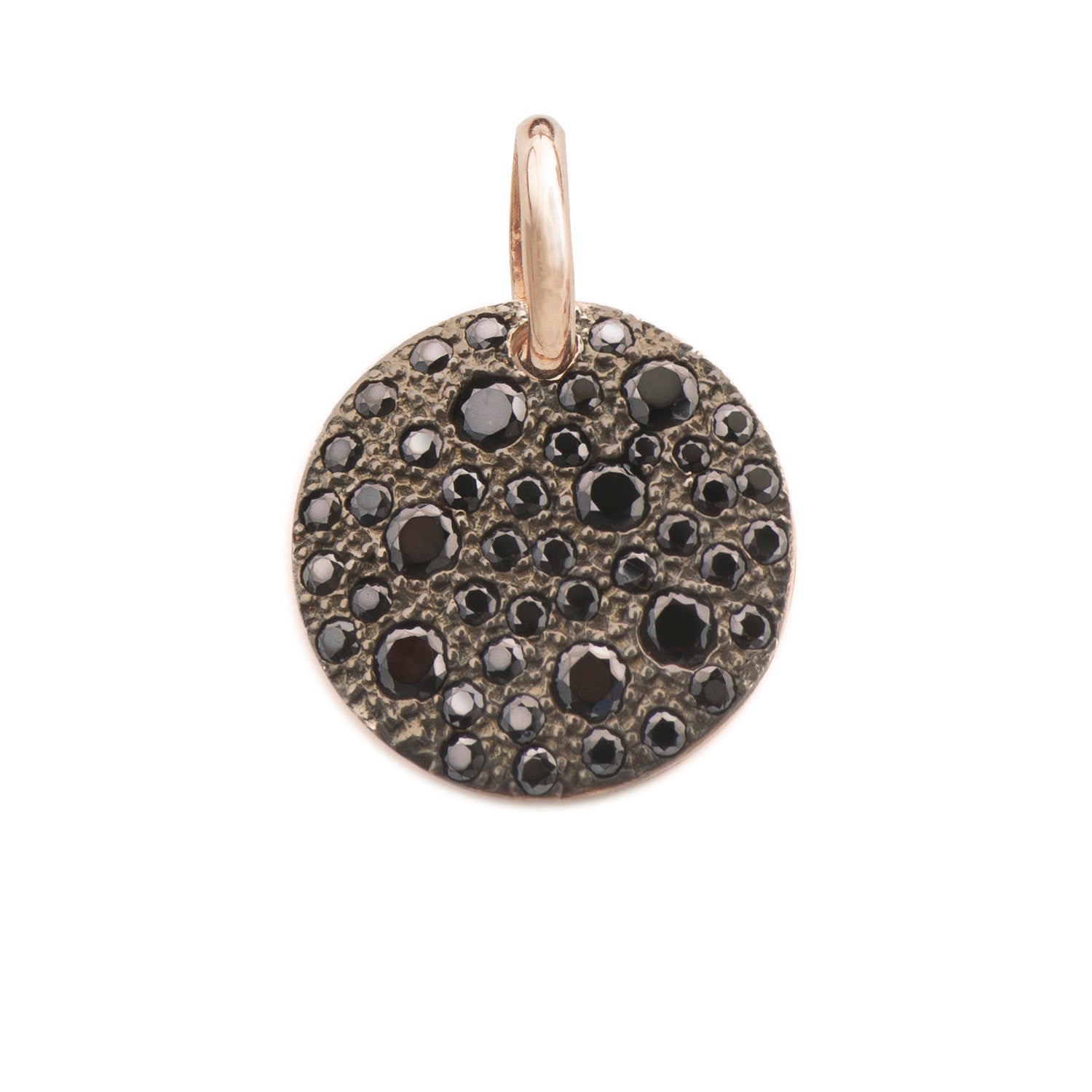 Pendente in argento 925 rosè tondo medio 15 mm e zirconi neri.