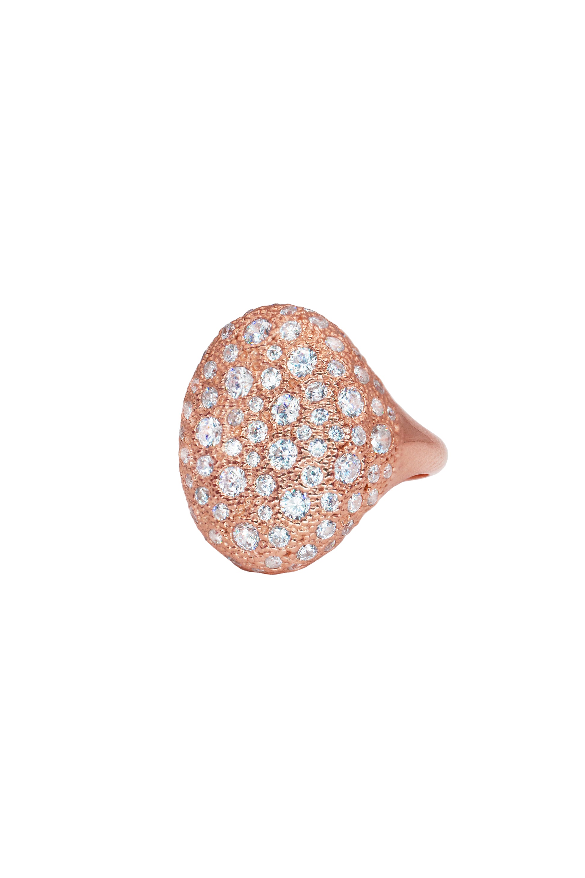 Anello chevalier ovale in argento 925 rosè e zirconi bianchi.