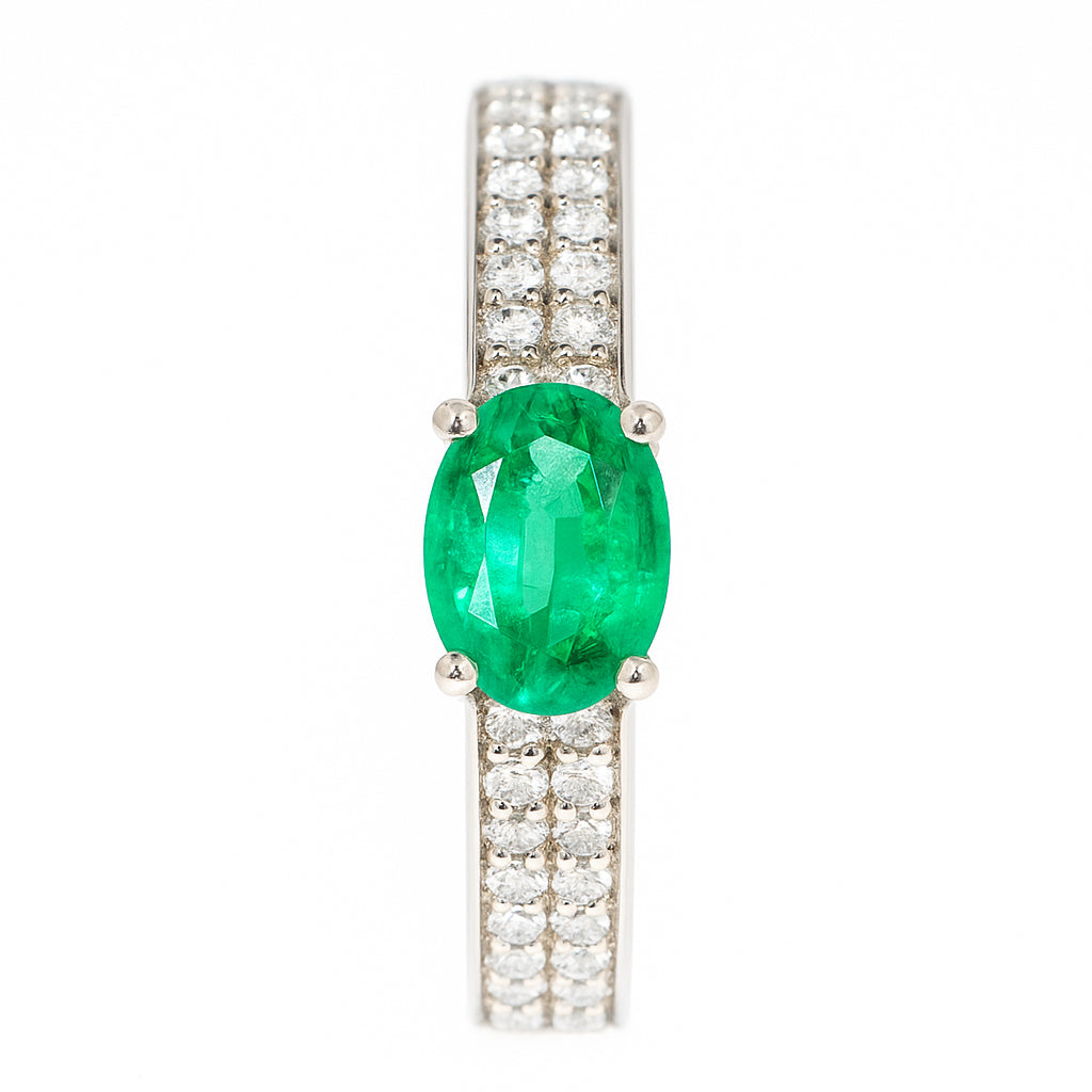 Anello veretta con Smeraldo taglio ovale in oro bianco 18Kt.
