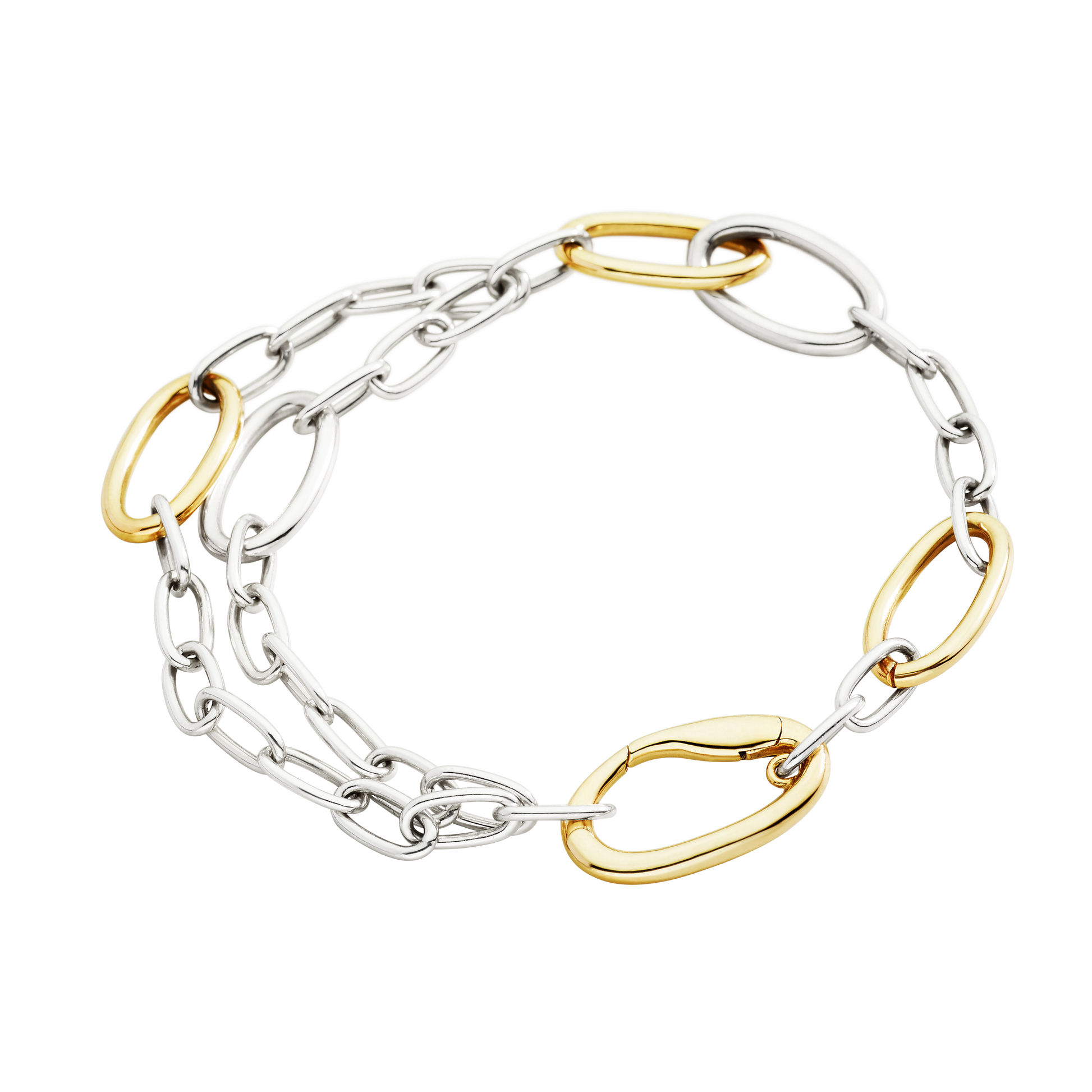 Bracciale Essentials catena bold e maglia apribile in argento 925 e argento dorato oro giallo 18K.