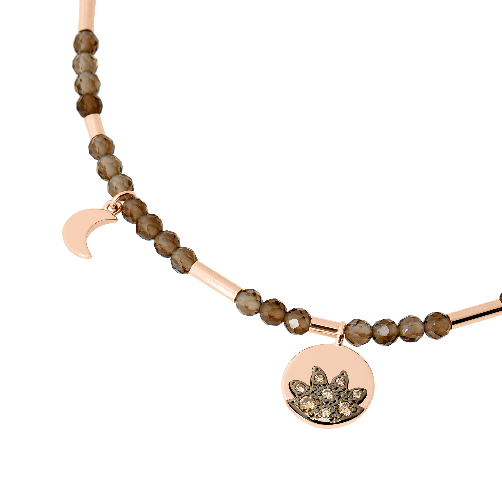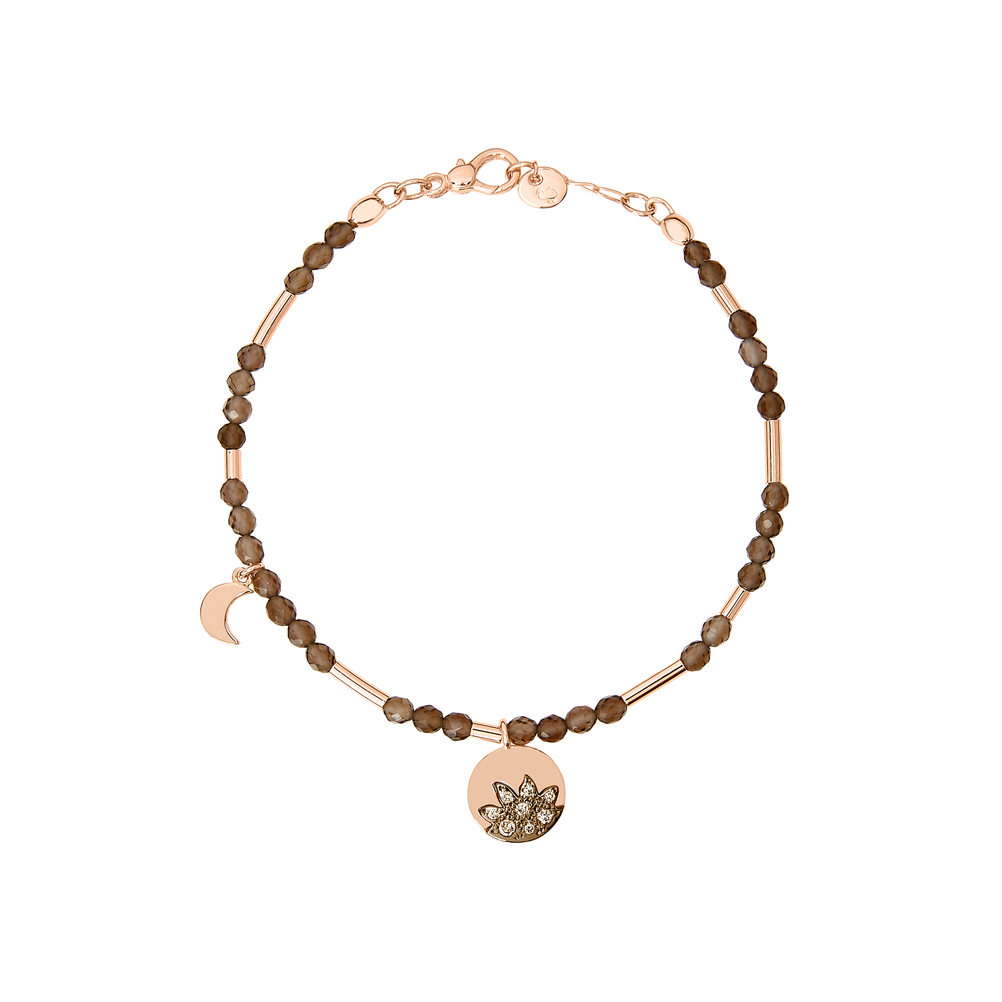 Bracciale in oro rosa 9kt con Quarzo Fumè, 8 Diamanti Brown E 1 Ciondolo Mini Icon In Oro Rosa 9k (Ct 0.083)