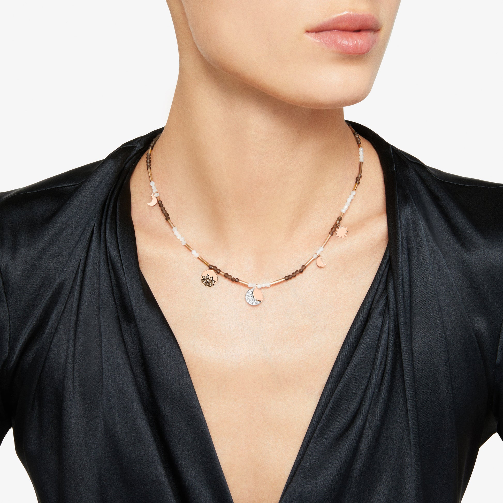 Collana in oro rosa 9kt con Quarzo Fumè, Adularia, 13 Diamanti Bianchi, 8 Diamanti Brown E 3 Ciondoli Mini Icon In Oro Rosa 9k (0.17 ct).