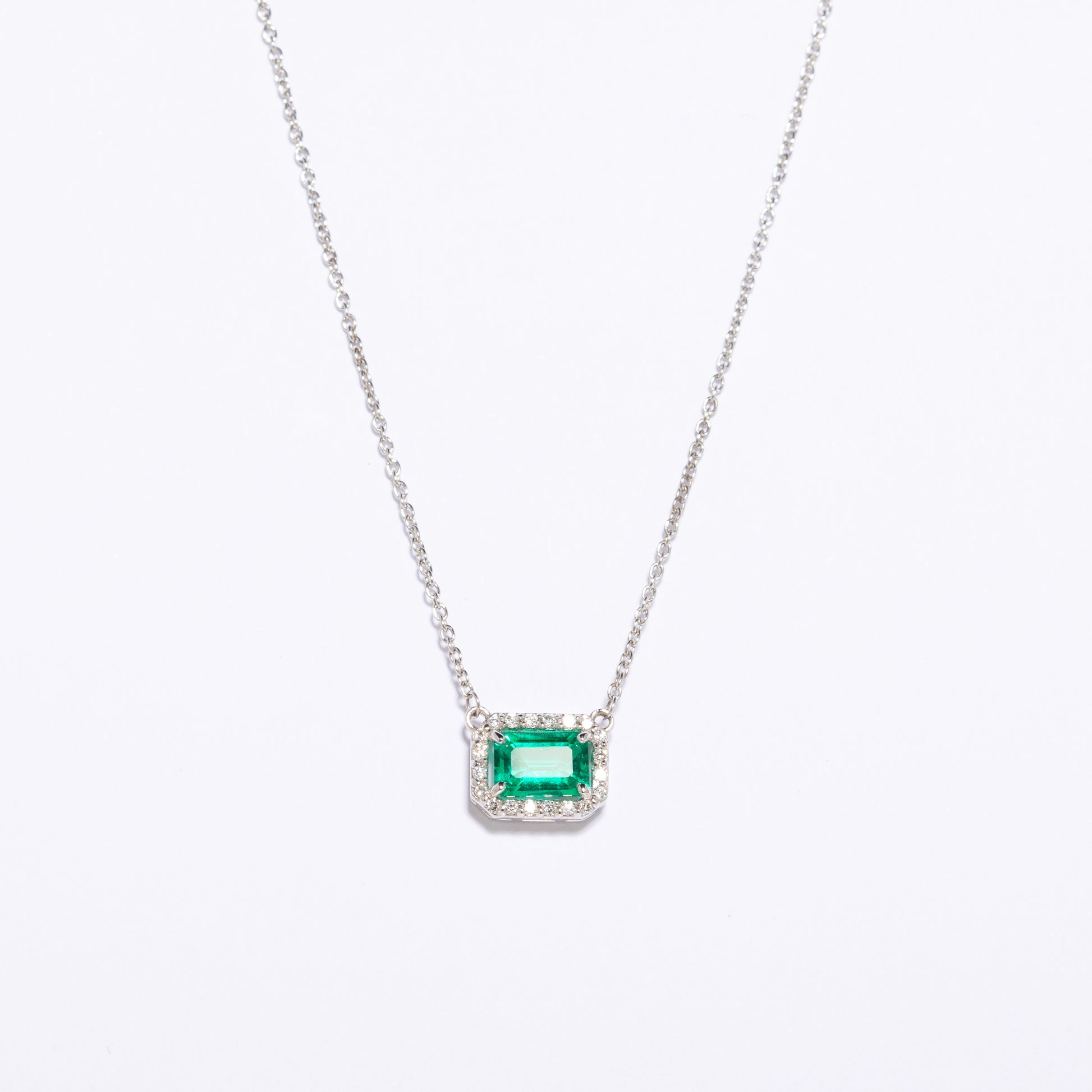 Girocollo con Smeraldo taglio smeraldo in oro bianco 18Kt.