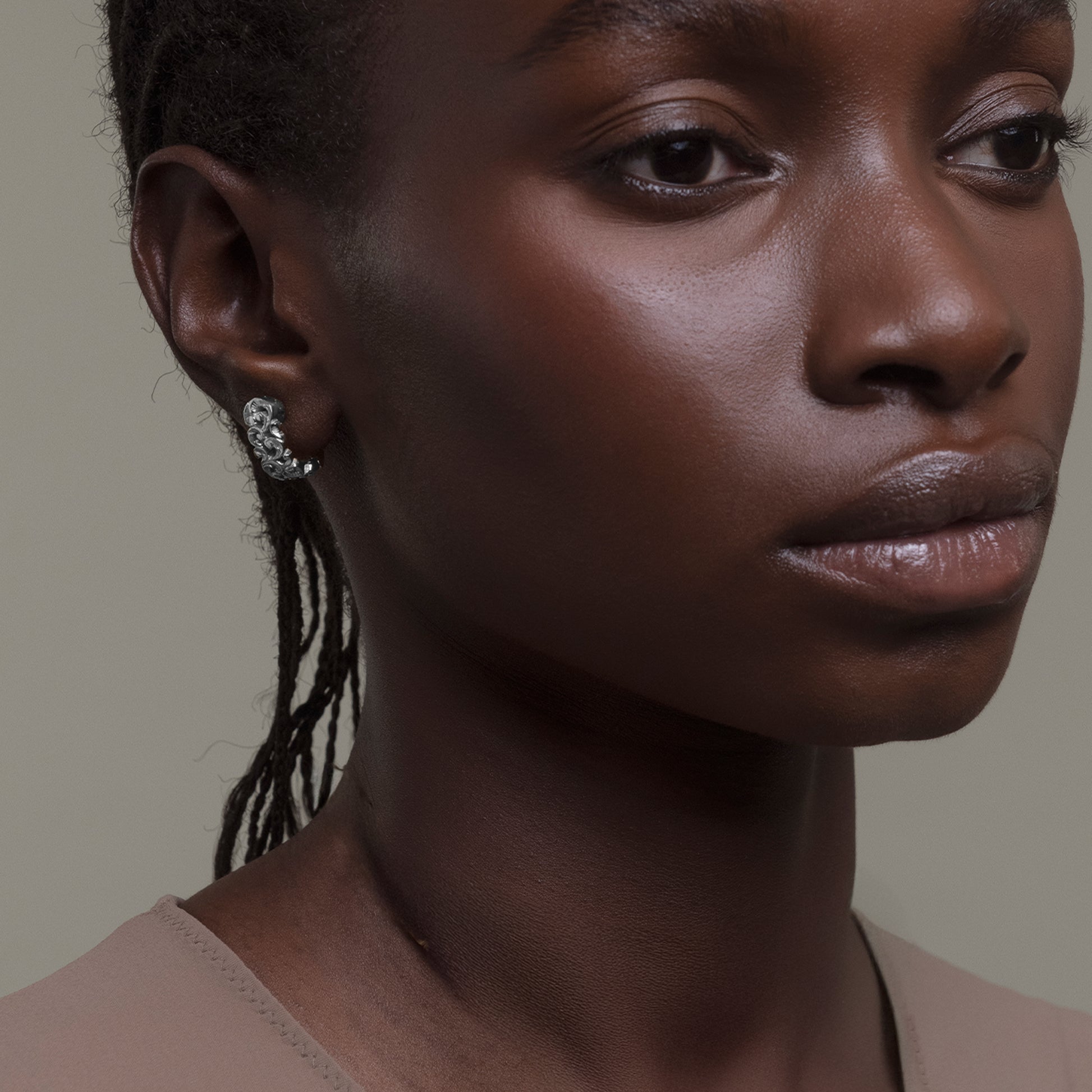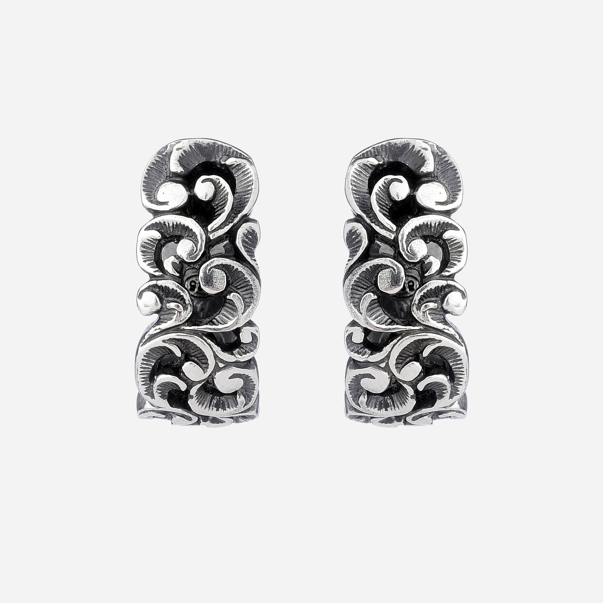 Orecchini a lobo in argento 925 brunito con chiusura a scattino.